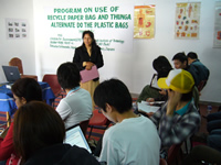 主な活動は、店での紙袋の使用促進と20ミクロン以下の薄さのビニール袋の使用を減らす。